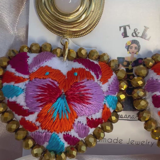 Estos aretes son una verdadera pieza de arte textil, bordados completamente a mano en la técnica tradicional de San Antonino, Oaxaca, reconocida por sus puntadas detalladas y relieves llenos de color y vida. Cada flor es elaborada con paciencia y maestría artesanal, haciendo de cada par una pieza especial.