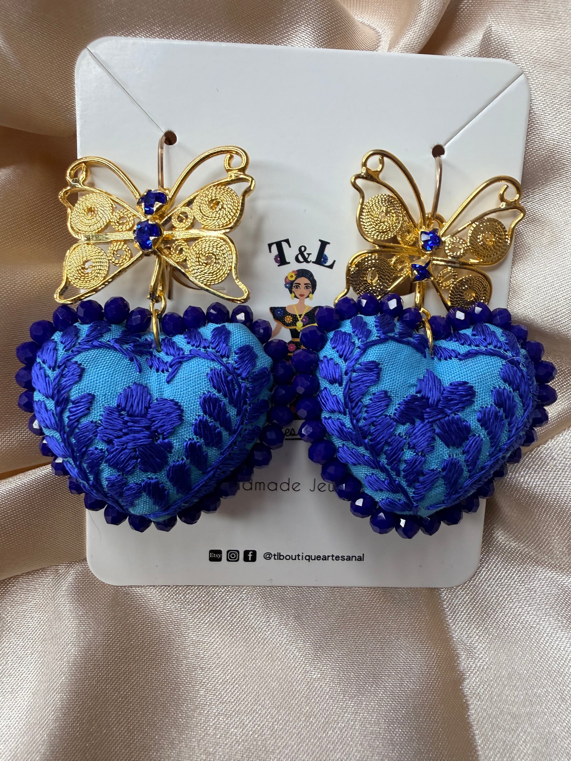 Aretes Bordados a Mano con Filigrana Oaxaqueña – Diseño Único y Ligeros/mariposas