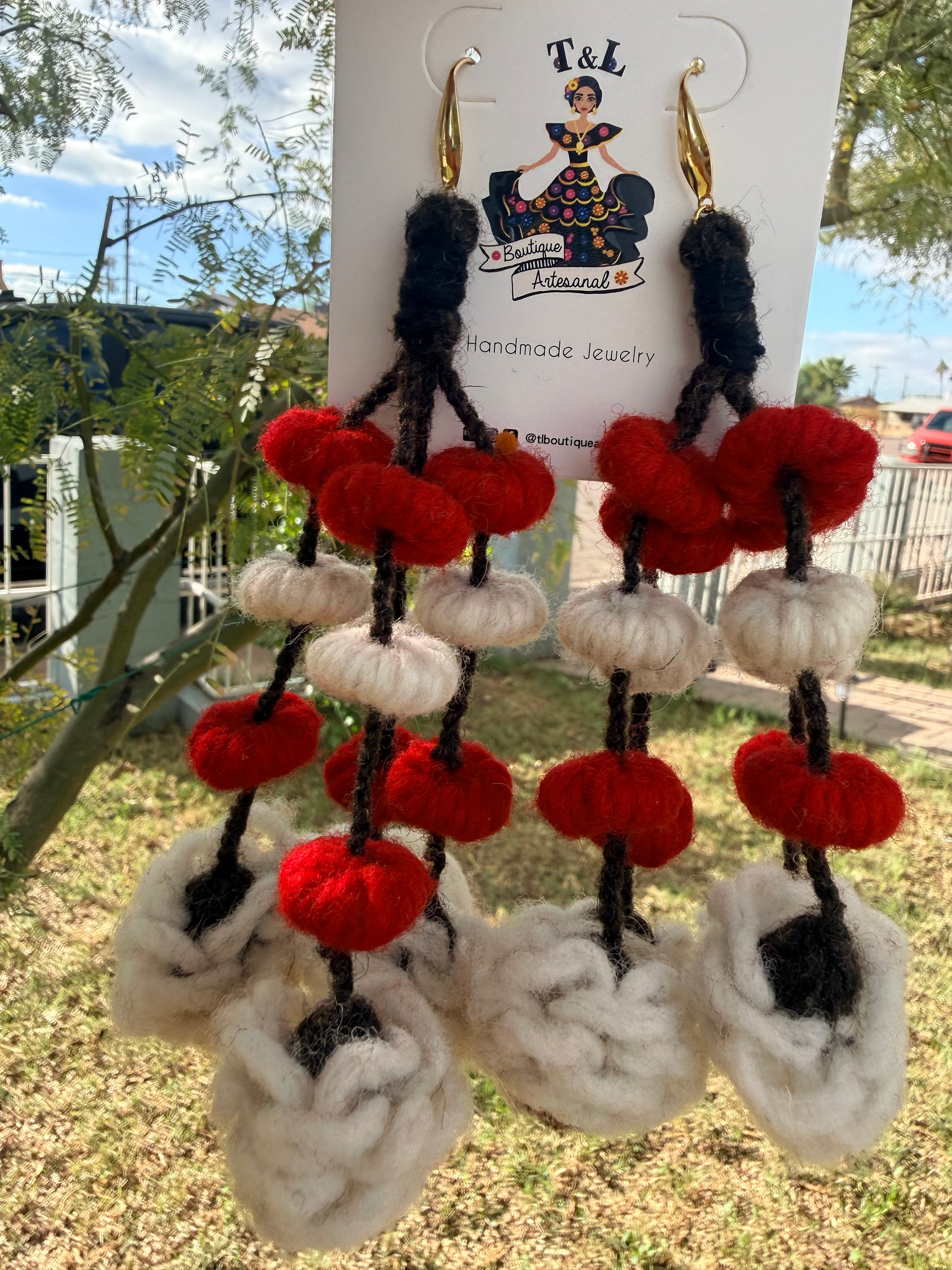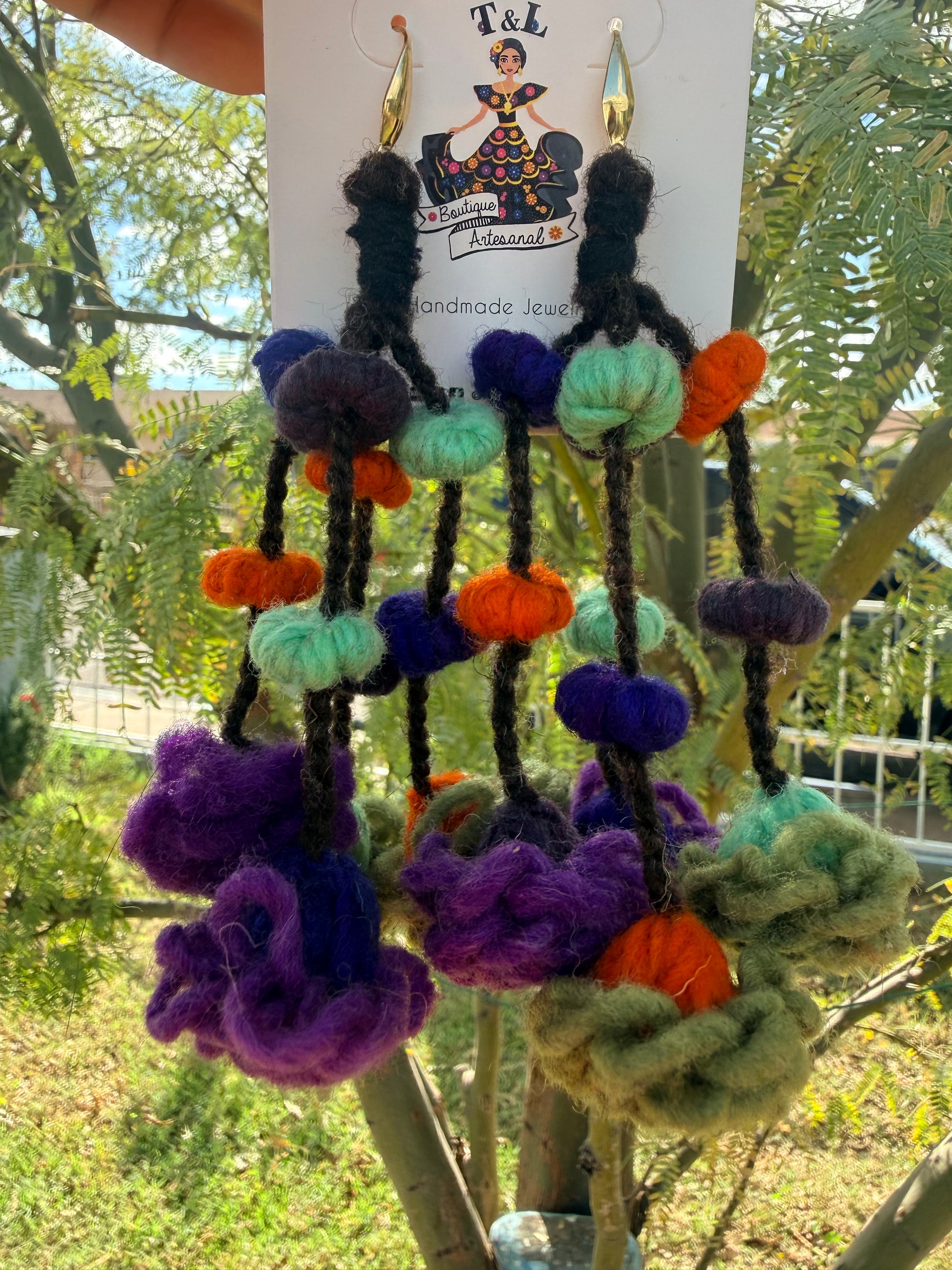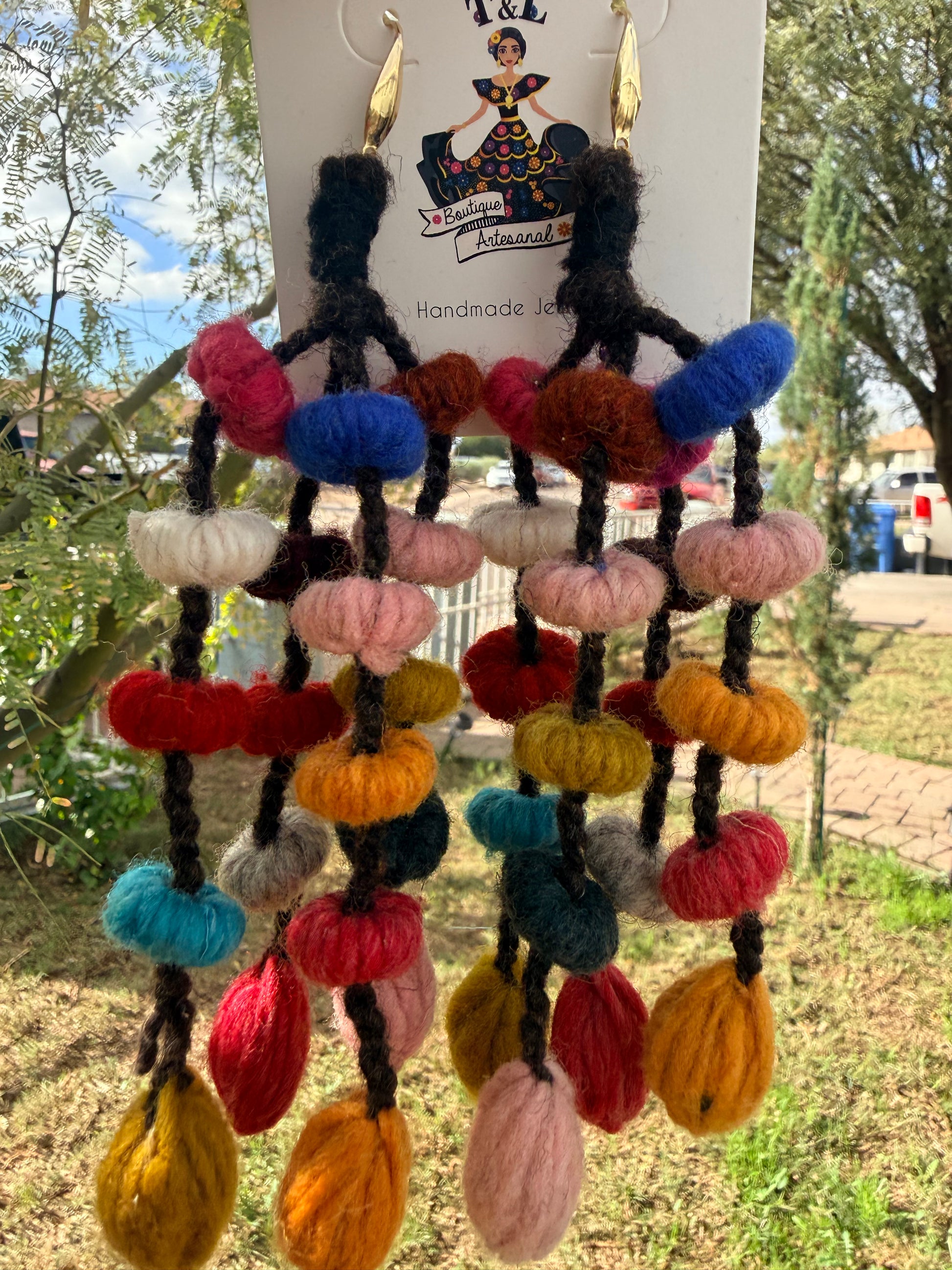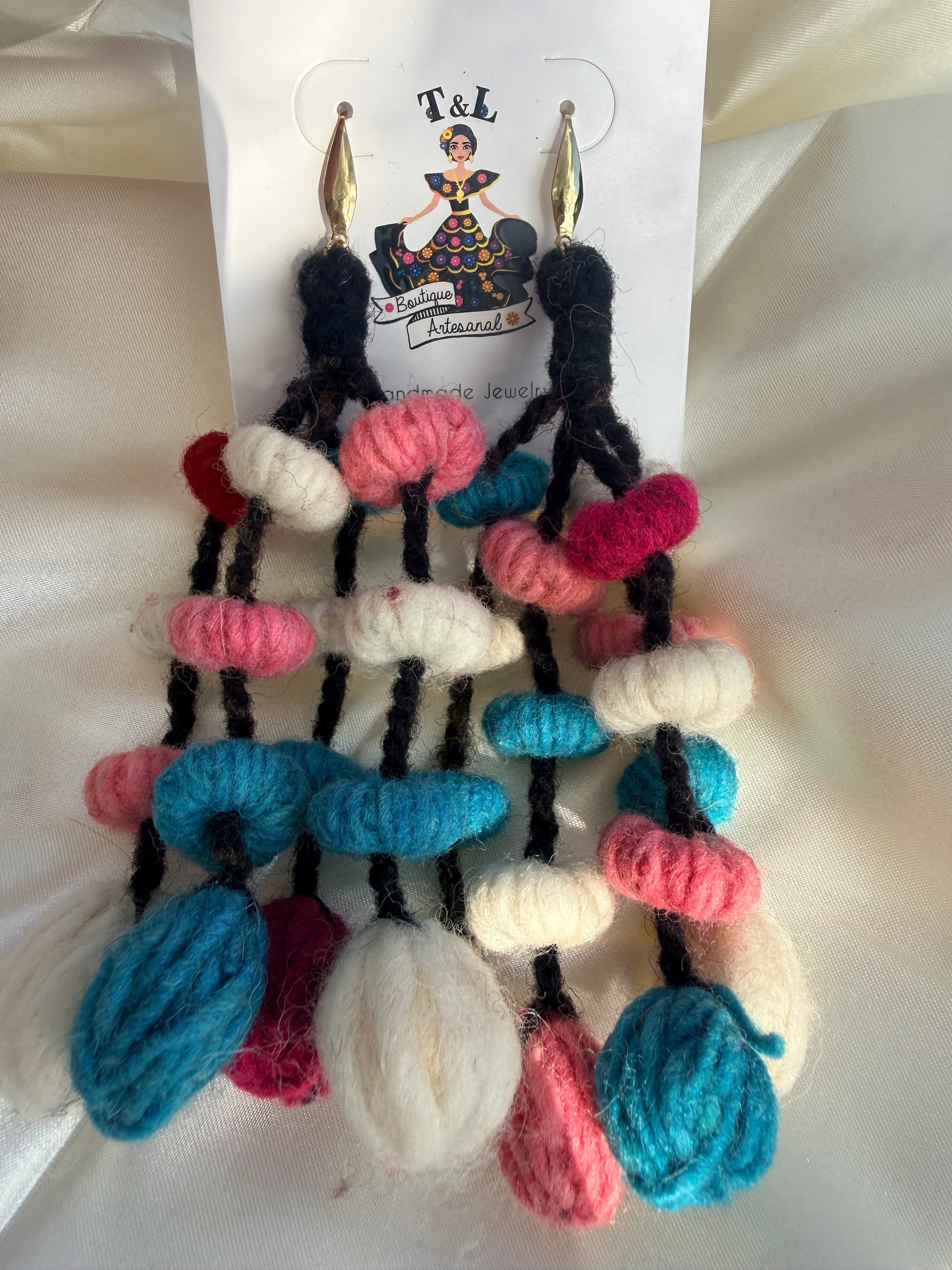 Aretes tlacoyales/aretes de lana /aretes hechos a Mano/ aretes artesanales /hand made jewelry