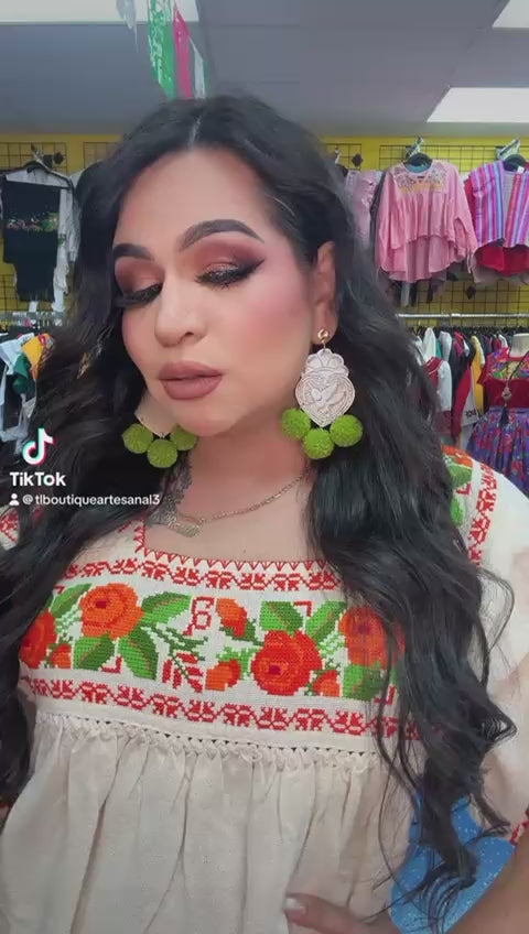 Huanengo de Michoacán Bordado a Mano en Punto de Cruz | Flores Tradicionales | Manta Tejida en Telar de Pedal
